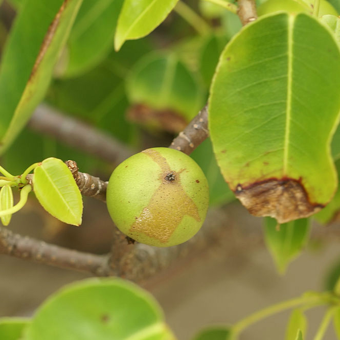毒番石榴,又名馬瘋大戟木,是大戟科烏桕族的喬木植物,2011年被吉尼斯世界紀錄評為“世界上最危險的樹”。這種樹原生于美國佛羅里達州、巴哈馬群島、加勒比海、中美洲和南美洲北部的熱帶地區(qū),常生長在海灘沙地。由于其果實和葉子與蘋果相似,故也稱為“海灘蘋果”。 毒番石榴樹的所有部分均含有強烈的毒性。其乳白色的樹液含有佛波醇等物質(zhì),能引起強烈的過敏性接觸性皮炎。雨水觸碰樹液后,即使是微量的接觸也可能導(dǎo)致皮膚起水泡。樹液還能損壞汽車油漆。燃燒其樹木產(chǎn)生的煙霧若接觸眼睛,可能引起嚴重傷害。直接接觸樹液會引發(fā)大皰性皮炎、急性角膜結(jié)膜炎,甚至可能導(dǎo)致角膜上皮損傷。