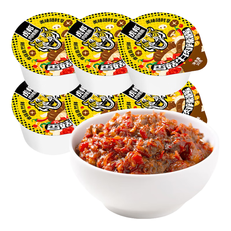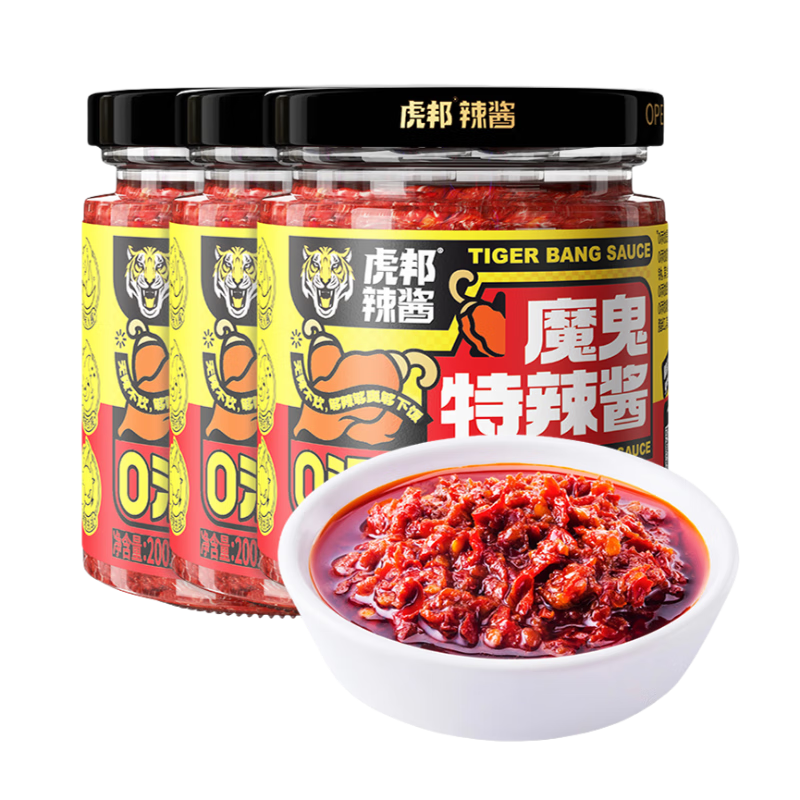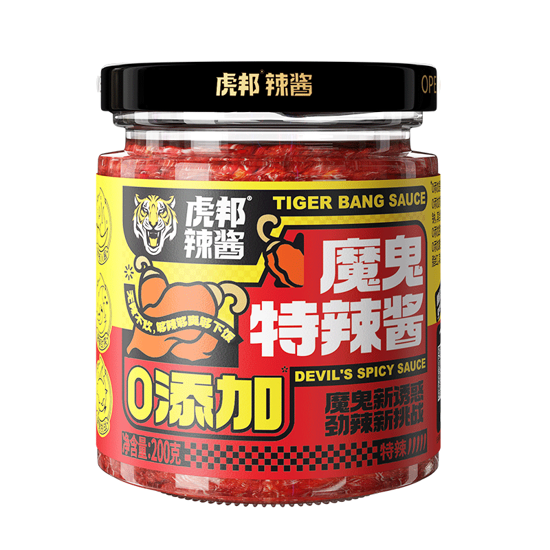 國內(nèi)新派辣椒醬品牌?;罾贬u主張新派食辣,2017年,虎邦辣醬聯(lián)合各大外賣平臺主打50g外賣統(tǒng)—標(biāo)配裝,—餐—盒,深受消費(fèi)者的青睞美食,是辣醬中的“網(wǎng)紅”。