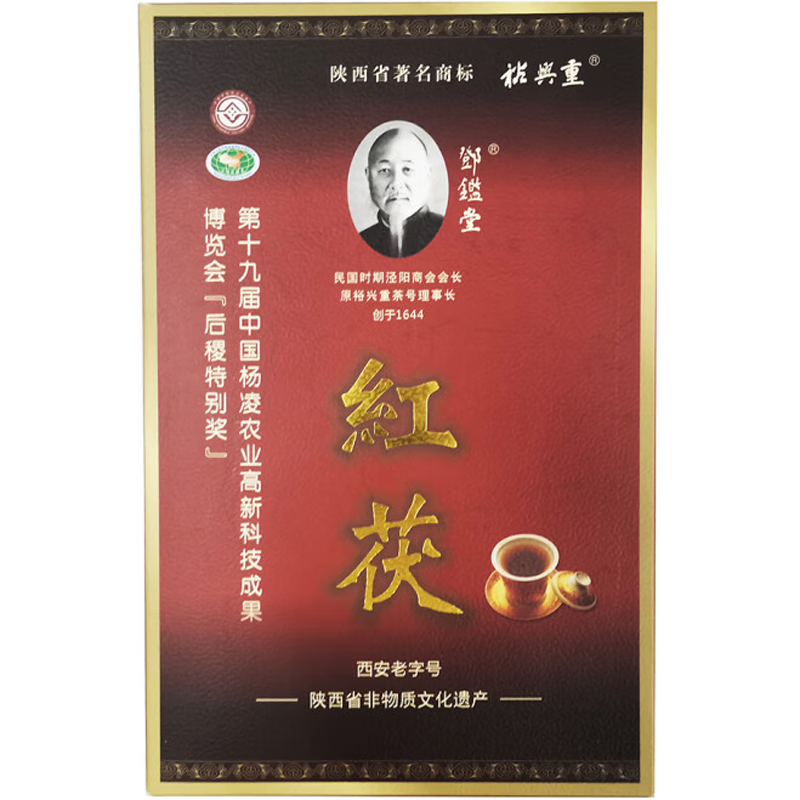 裕興重茶莊創(chuàng)建于明末清初,盛行于清同治年間,其規(guī)模和影響力為當(dāng)時近百家涇陽茯磚茶莊之首。在近代中國工業(yè)發(fā)展史上裕興重茶莊留下了輝煌的一筆,民國時期的裕興重茶莊理事長鄧鑑堂為當(dāng)時的涇陽縣商會會長。由于其將茯磚茶收入的相當(dāng)大一部分捐獻(xiàn)給陜西靖國軍,支持民主革命,受到民主革命的先驅(qū)、國民黨元老時任陜西靖國軍司令于右任的稱贊。于右任親切地稱裕興重茯磚茶為“安國茶”,并揮毫潑墨,為寫下北宋詩黃庭堅的名句“甑有輕塵釜有魚,漢庭日日召嚴(yán)徐,不嫌蔾藿來同飯,更展芭蕉數(shù)尺蔭”作條幅收藏。